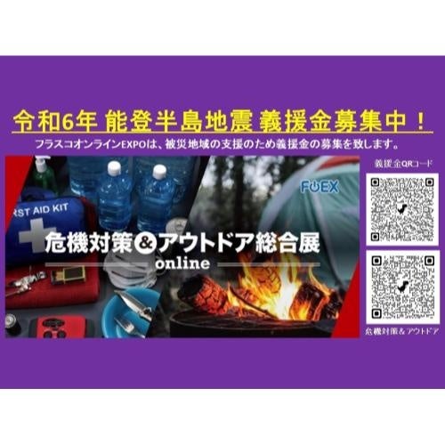 「危機対策&アウトドア総合展online 」は、あらゆる危機(地震/風水害/雪害/津波/感染などの異常な自然災害と防犯/情報セキュリティなどの人為的原因によって人間の社会生活や人命に受ける被害)に対する対策とアウトドアアクティブ(キャンプ/登山/BBQ/災害対策応用など)としてのこだわりの商品を展開し情報発信するオンラインの総合展示会です。