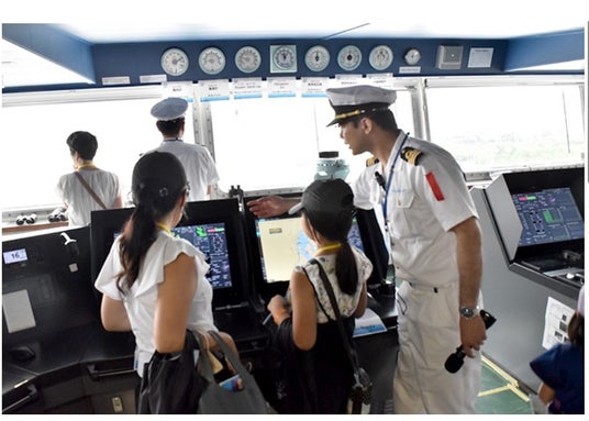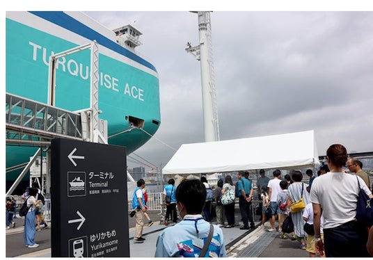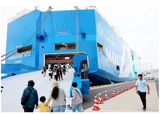 株式会社商船三井(社長:橋本剛、本社:東京都港区、以下「商船三井」)は、「海と日本プロジェクト」の一環として、一般社団法人日本船主協会(会長:明珍幸一、本部:東京都千代田区、以下「日本船主協会」)と協力し、7月15日の海の日に、次世代を担う子供たちに船と海を身近に感じてもらうため、LNG燃料自動車船BLUEシリーズの2隻目となる「TURQUOISE ACE(読み:ターコイズ エース)」(註1)の船内見学会を開催しました。