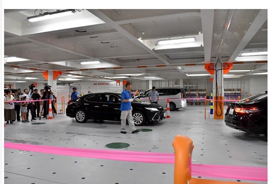 見学会はコロナ禍の影響により2019年を最後に中断されていましたが、この度5年ぶりの開催となりました。多くの応募のあった中から当選した小中学生親子を含む約500名が参加しました。参加者は、全長約200mの巨大な自動車船に乗り込み、ブリッジ(船橋)や船内居住区エリア等を見学し、船員から船や海運業についての説明を受けました。見学会の最後には、船倉(貨物スペース)で車の積み付けのデモンストレーションを見学頂きました。