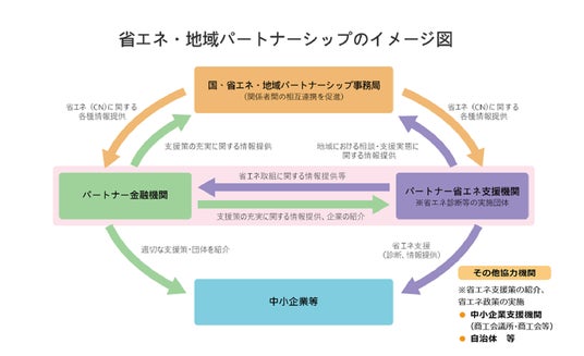 「省エネ・地域パートナーシップ」は、中小企業の省エネ推進を地域一体となって支援するため、資源エネルギー庁が2024年7月に立ち上げた枠組みです。200を超える金融機関や省エネ支援機関などがパートナー機関として参加しています。