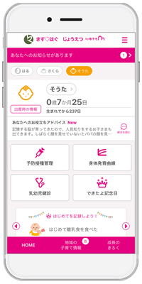 妊産婦と子どもの健康データの記録・管理や予防接種のスケジュール管理、出産・育児に関するアドバイスの提供、離れた地域に住む祖父母など家族との共有機能、子どもの成長・発達の目安としての役割も備えている育児日記「できたよ記念日」などの便利な機能から、自治体が配信する地域の情報をお知らせするなど、育児や仕事に忙しい母親や父親を助けてくれる機能が充実しています。