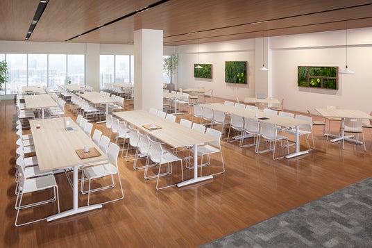 働く場へのウェルビーイングの実現の手法として食堂やカフェテリア、リフレッシュスペースなどの充実が注目されています。食事の提供や福利厚生としての施設にとどまらず、コミュニケーション活性化や社員の健康促進、イベントなどの開催を通じて社会との連携を行うための場としても活用されています。