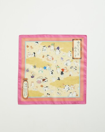 今回は日本画家で東京藝術大学助教の谷津有紀さんに、麻布台ヒルズで楽しくお買い物をする、七福神ねこ様とその仲間たちの姿を描いていただきました。見ているだけでも自然と笑顔になってしまい、持っていると何かいいことが起こりそうな、とても縁起のよい風呂敷です。