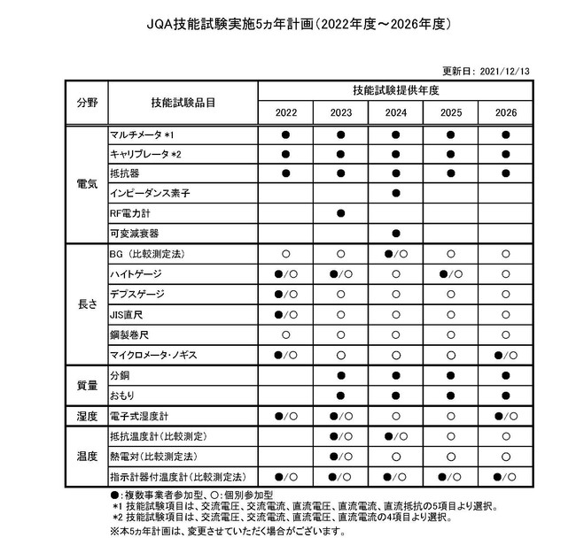 一般財団法人日本品質保証機構(本部:東京都千代田区、理事長:小林 憲明)は、技能試験提供者として校正分野で国内初となる「ISO/IEC 17043(JIS Q 17043)」の認定を取得し、技能試験を実施しています。このたび、2022年度~2026年度の技能試験実施予定を公開いたしました。