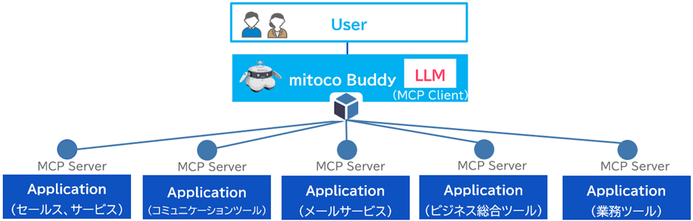 「mitoco Buddy」は企業内に乱立するクラウドサービスをMCPで統合し、情報連携とデータ活用を促進することで、意思決定の加速化と業務自動化を支援します。
