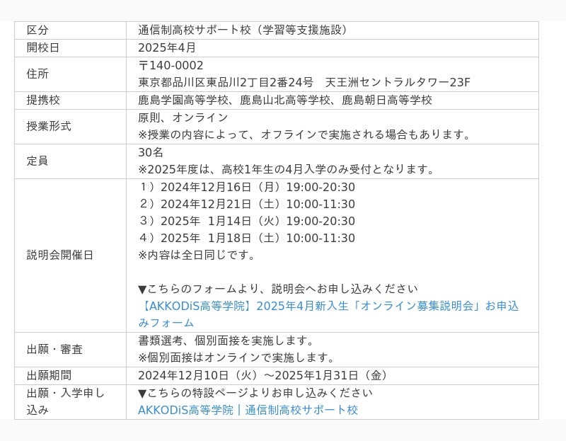 世界30ヵ国でデジタルエンジニアリングを核としてスマートインダストリー領域をリードするAKKODiSの日本法人で、現場変革の力とデジタル技術によりビジネストランスフォーメーションを支援するAKKODiSコンサルティング株式会社(本社:東京都港区、代表取締役社長:川崎 健一郎、「以下、AKKODiS」)は、不登校生徒の増加という社会課題に対応するとともに若年層のデジタル人財の育成を目指す、「AKKODiS高等学院」を2025年4月に開校します。AKKODiS高等学院は、カシマ教育グループが運営する通信高等学校3校と提携のもと、通信制高校サポート校(学習等支援施設)として卒業に必要な単位取得や学習面をサポートします。