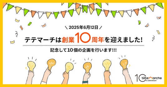 企業向け SNSマーケティング支援を中心としたビジネス展開をするテテマーチ株式会社(本社:目黒区、代表取締役:上田 大介)は、2025年6月12日に会社設立10周年を迎えました。これまで当社を支えてくださったお取引先様、パートナー企業様、そして当社が根を張る目黒の街の皆様へ心からの感謝を伝えるため、「感謝」をテーマとした10個の特別企画を実施することをお知らせいたします。