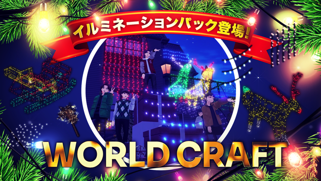 ワールドクラフトは、毎月第三木曜日に新アイテムパックがリリースされます。今回はクリスマス気分を盛り上げる「イルミネーションパック」が追加されました。お気に入りの空間をクリスマスデコレーションしたり、フレンドを招待してみんなで楽しくクリスマスパーティを開いてみてはいかがでしょうか?