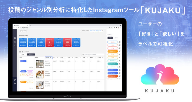 ・投稿のジャンル別分析に特化したInstagram最適化ツール「KUJAKU(https://kujaku.app/)」の提供