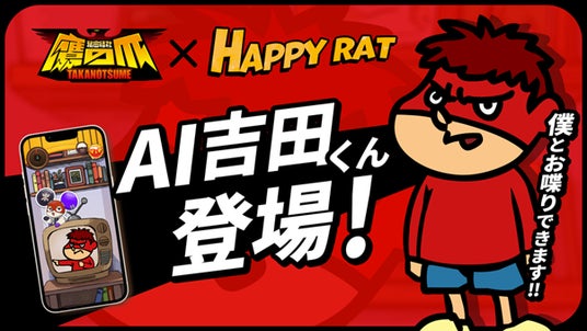 『秘密結社 鷹の爪』のキャラクター「吉田くん」が、『HAPPY RAT』に期間限定で登場します。 本コラボレーションでは、「吉田くん」がAI VTuberとしてアプリ内に実装され、ユーザーはAI化された吉田くんとの自由な対話をお楽しみいただけます。