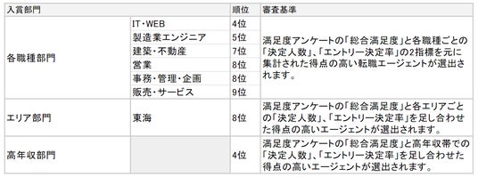 ほかにも、各職種部門、エリア部門、高年収部門でそれぞれ入賞いたしました。
