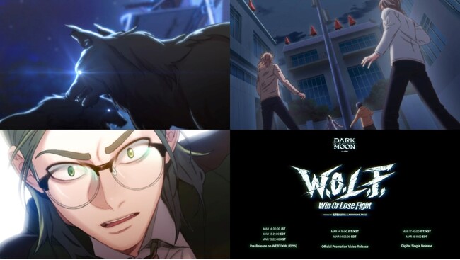 「W.O.L.F. (Win Or Lose Fight)」は、Naver WEBTOON worldwide serviceで連載されている『黒の月: 灰色の都市』Webtoonの15話で音源の一部が公開されます(日本語版のLINEマンガでは3月14日午前0時の公開)。また同日にはWEBTOON作画とOSTが融合したプロモーションビデオが公開され、全曲は3月17日に全世界の音源サイトとストリーミングプラットフォームで配信される予定です。