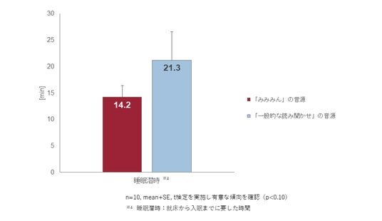 「みみみん」の音源の方が入眠までにかかる時間が短縮されることが示唆された。