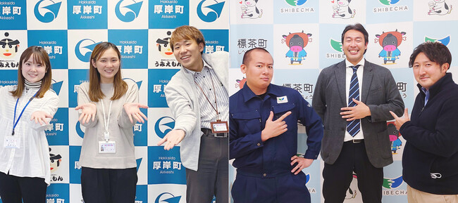 コラボお節の担当者:左から、厚岸町役場:遠藤さん、吉江さん、中野さん、標茶町役場:中村さん、河村さん、國廣さん