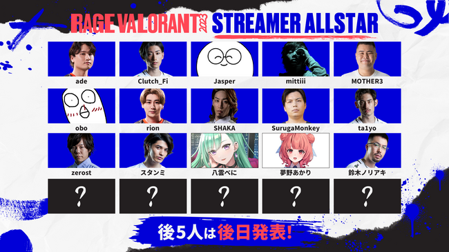株式会社CyberZ、エイベックス・エンタテインメント株式会社、株式会社テレビ朝日が運営する国内最大級のeスポーツエンターテインメント「RAGE(レイジ)」は、タクティカルFPSゲーム『VALORANT』の大型有観客イベント「RAGE VALORANT 2023」を幕張メッセ 9-10-11ホールにて2023年9月16日(土)-17日(日)の2日間開催します。今回、人気ストリーマーの出演が一部決定しましたのでお知らせします。