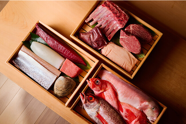 他にも、この時期に旬を迎える、天然鯛や初鰹、鰆などの様々な食材を集めたネタ箱の中からゲストに好きな食材をお選びいただきご提供いたします。