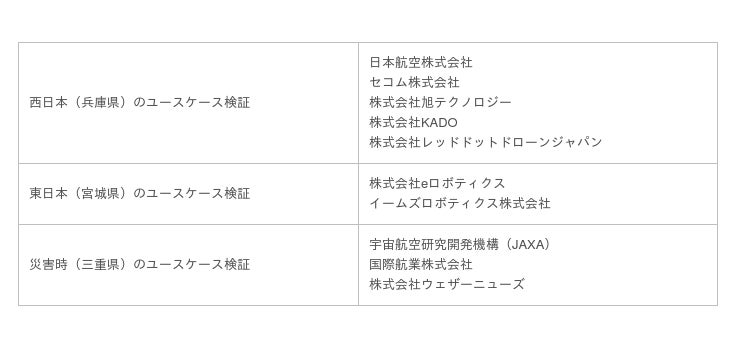 本事業では2021年度末までに、ドローンの有人地帯における目視外運航(以下 レベル4)を実現するためのドローンの運航管理機能の開発と、持続可能なビジネスモデルの確立に向けた西日本(兵庫県)、東日本(宮城県)、災害時想定(三重県)の3エリアでの先行実証および、さまざまな地域での実証を実施します。