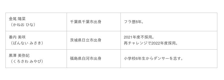 <新人フラガールの名前と出身地>3県3名