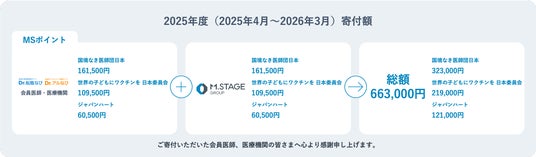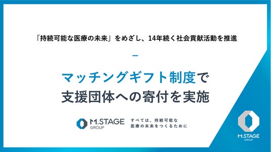 株式会社エムステージグループ(本社:東京都品川区、代表取締役:杉田雄二)は、2025年度(2025年4月~2026年3月)において、医師や医療機関からのポイント寄付とエムステージグループからの寄付を合わせた総額663,000円を、社会活動を支援する3つのNPO・NGO団体へ寄付いたしました。