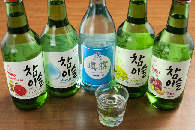 韓国で人気の焼酎チャミスルも豊富にラインナップ。スタンダードのほか、マスカット、すもも、グレープフルーツ、眞露is backをご用意しています。