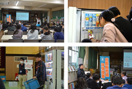 内容 : 自動販売機オペレーション担当者による「自動販売機のお仕事」の説明 / 自動販売機への飲料補充体験 / 商品サンプル取り付け体験 など