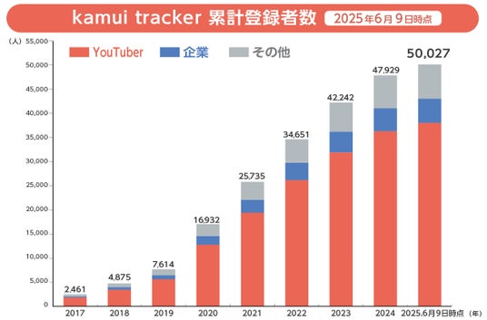 株式会社エビリー(本社:東京都渋谷区、代表取締役社長:中川恵介、以下「エビリー」)が提供する国内最大級のYouTubeデータ分析ツール「kamui tracker(カムイトラッカー)」の累計ユーザー数が、50,000人を突破したことをお知らせします。