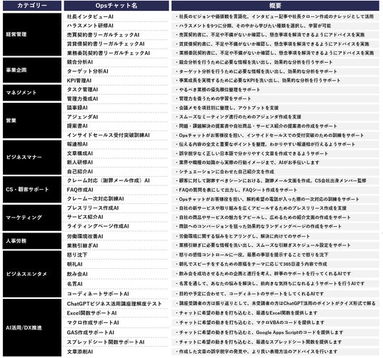 今回リリースした3つ以外にも、既に法人向けChatGPT「Ops(オプス)AI」には当社独自開発のGPTsが搭載されています。