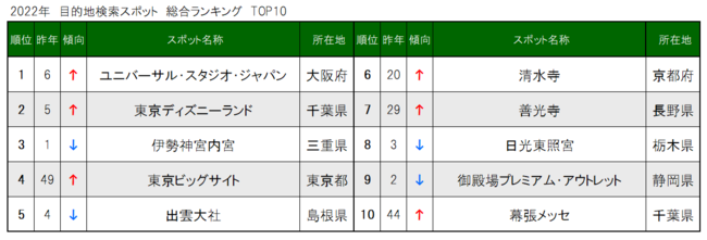 ・『2022目的地検索スポット 総合ランキング』TOP100