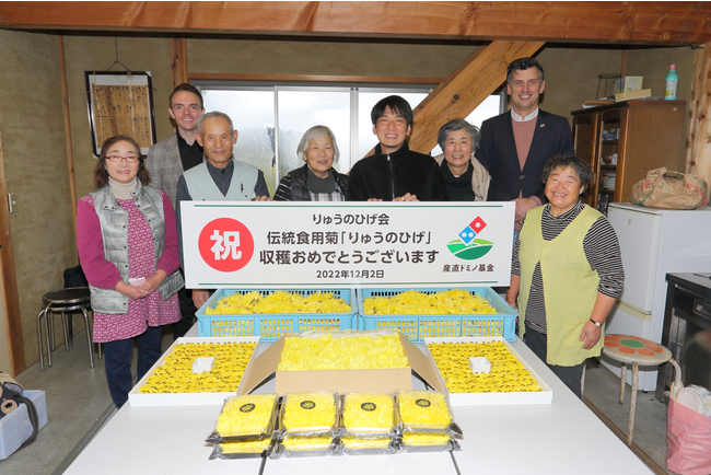 りゅうのひげ会事務局の小倉壮平さんは、「この伝統食用菊を将来に向けて絶やさないためには、「りゅうのひげ」の流通と加工に本格的にチャレンジしたいと強く思っていました。使途の制約が少なく、申請書類も煩雑ではないので、専従職員がいない私たちの活動にはとてもありがたかったです。「りゅうのひげ会」の取り組みは、小さな活動ですが、ドミノ・ピザのような大きな有名企業が支援してくださることで知名度も上がると思います。」とお話されました。
