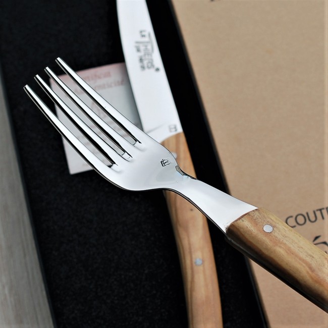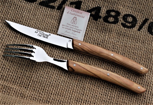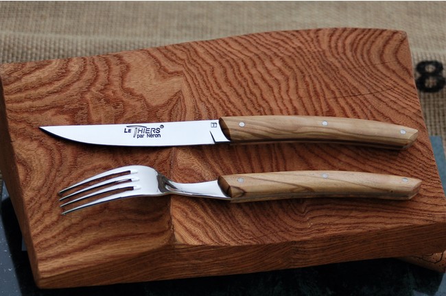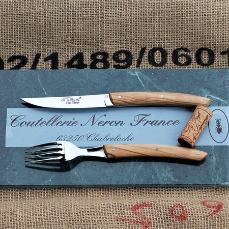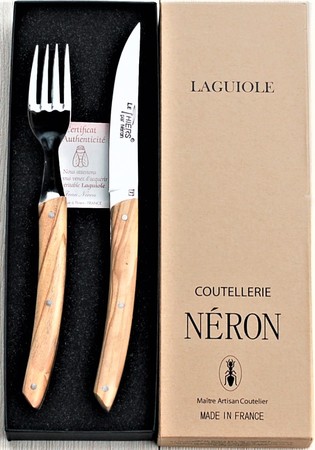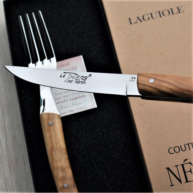 天然オリーブハンドル Theirs 2.5mmブレード ステーキナイフ フォークセット ギフト箱入り フランス製 NERON 価格;¥29,800(税込)