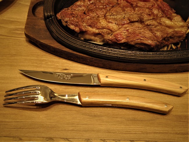 手になじみ温かみのある天然オリーブハンドルを採用した Le Theirs (チエール)ステーキナイフは1本づつ職人が手仕上げをしています、研ぎ直して長く使えるカトラリーでハンドルも使ううちに自然な艶が出て愛着が増します。 フォークも同シリーズのものをご用意、高級カトラリーの切れ味と質感をお楽しみください。