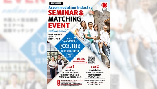 全国約4,600施設以上の観光施設に特化した人材サービス事業を展開する株式会社ダイブ(東京都新宿区、代表取締役社長:庄子潔、証券コード:151A、以下「ダイブ」)は、観光庁が主催する特定技能の宿泊分野に関するセミナーおよび特定技能人材と宿泊施設の就職マッチングイベントを運営し、3月18日(火)15:00よりオンラインにて開催いたします。