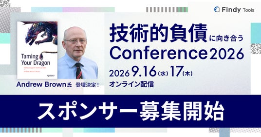 エンジニアプラットフォームを提供するファインディ株式会社(東京都品川区、代表取締役:山田 裕一朗、以下「当社」)は、2026年9月16日(水)・9月17日(木)の2日間、オンラインで「技術的負債に向き合うConference 2026」を開催することを発表します。本カンファレンスは、技術的負債に取り組むベストプラクティスや事例を共有するものです。現在、本カンファレンスのスポンサーを募集しております。