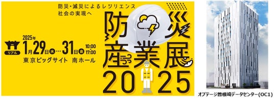 株式会社オプテージ(大阪市中央区)は、2025年1月29日(水)~1月31日(金)に東京ビッグサイトで開催される日刊工業新聞社・日本防災産業会議主催「防災産業展2025~防災・減災によるレジリエンス社会の実現へ~」に出展いたします。また、本展示会にて授賞式が執り行われる、一般社団法人減災サステナブル技術協会主催「防災・減災×サステナブル大賞2025」において、当社データセンターがスマ―テスアワード奨励賞を受賞したことをお知らせいたします。