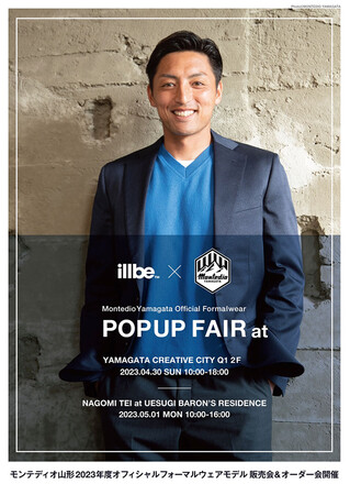 当日は本フォーマルウェアのディレクターで元モンテディオ山形選手の廣瀬智靖氏が店頭に立ち、お客様の対応を行います。また、同氏が手掛けるオーダースーツレーベル「illbe」のオーダー会も実施いたします。