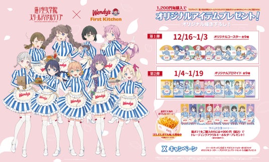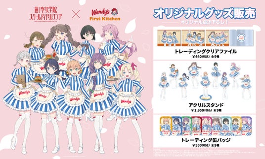 『ラブライブ!蓮ノ空女学院スクールアイドルクラブ』のコラボを記念して限定グッズをご用意!ここでしか買えない「ウェンディーズ・ファーストキッチン」限定のグッズをお買い逃がしなく!さらに『ラブライブ!蓮ノ空女学院スクールアイドルクラブ』メンバーが店舗限定を装飾して、皆さまをお出迎え!ぜひこの機会にご来店をお待ちしております。