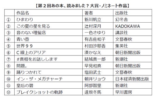 第2回は2024年11月から2025年10月の放送で深く取り上げた本の中から、番組スタッフがノミネート12作品を選定。番組にご協力いただいた出版社、ご出演いただいた書店員の方々、視聴者の皆さまに投票を募り、大賞を決定します。