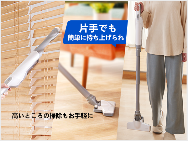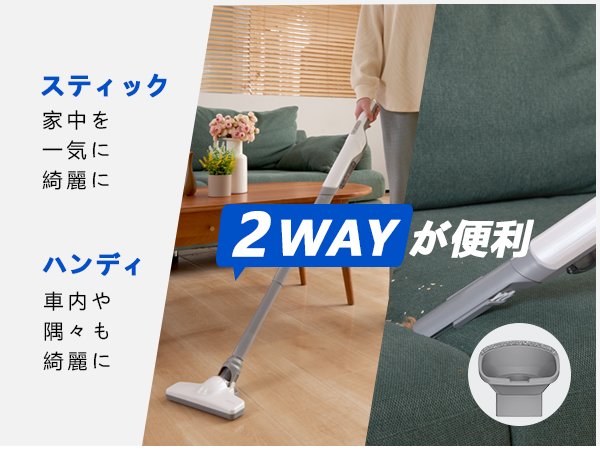 また、2WAYの使い方ができ、スティッククリーナーとして、ハンディクリーナーとして、として、充電台て収納することができます。0.9kgという軽さで、女性でも楽々使えます。