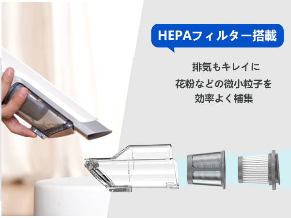 さらに、ハイパフォーマンスHEPAフィルターを採用し、微細なゴミやホコリもしっかりキャッチ。PSE認証済みの安心設計で、安全性も抜群です。