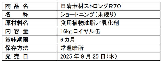 日清オイリオグループ株式会社(社長:久野 貴久)は、食品素材が持つ特徴的な風味を引き立てる新しい機能性油脂「日清素材ストロングR70」を発売します。