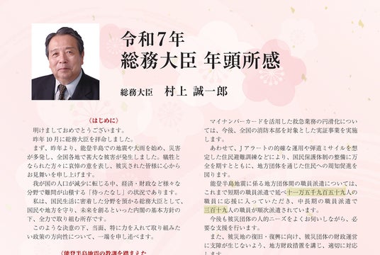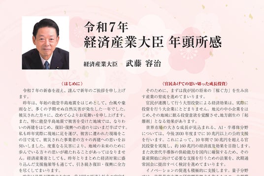 新年号は巻頭に村上総務大臣と武藤経済産業大臣の年頭所感を掲載しております。