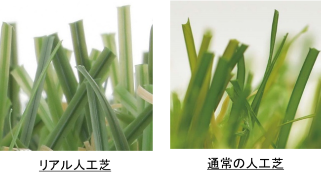一年中みずみずしい芝を楽しめる鮮やかな緑や、表現豊かな芝の濃淡を再現できる若緑の芝。枯れ色の芝はリアルな質感を表現し、ウェーブ状の芝でクッション性をアップさせました。