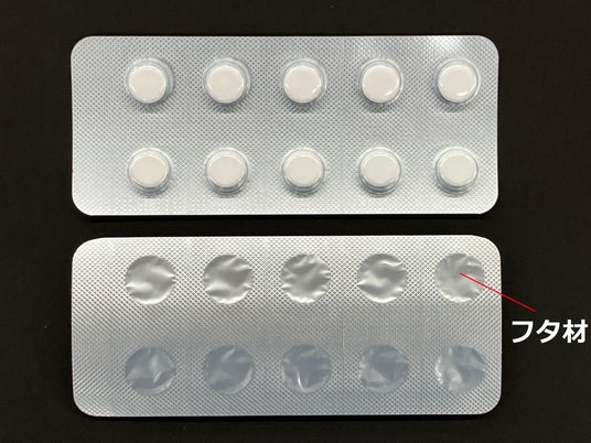 錠剤やカプセルの包装として世界的に広く普及しているPTP包装は、現在は樹脂(底材)とアルミ箔(フタ材)で作られているものが主流で、複数の素材で構成されているためリサイクルが困難でした。そのためフタ材にも樹脂を使用するモノマテリアル化が期待されています。