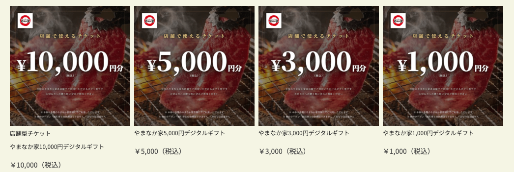 店舗型チケット特設ページはこちら:https://yamanakaya.jp/egift/