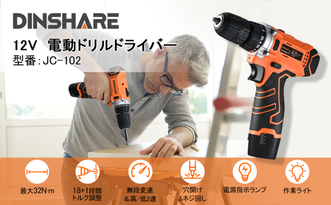 ※20%OFF--DINSHARE 電動ドリルドライバーJC-102