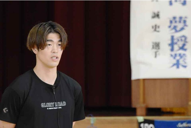 7月11日(火)、#7 長野誠史選手が刈谷市の朝日小学校を訪問し、小学6年生119名に講演および授業参加を行いました。