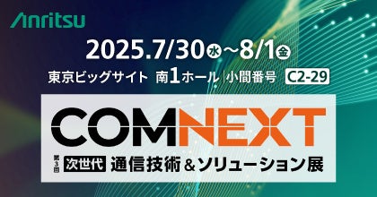アンリツ株式会社(社長 濱田 宏一)は、2025年7月30日(水)から8月1日(金)まで東京ビッグサイトにて開催される「COMNEXT 第3回[次世代]通信技術&ソリューション展」に出展いたします。