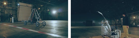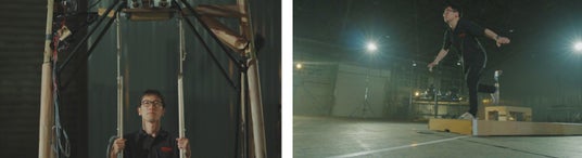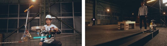 “脚立”が25mを爆走する! “キックスケーター”が自立して綱渡り!