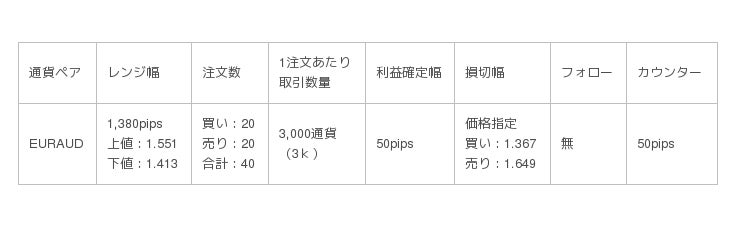 高値での買いと安値での売りを避けるために、レンジ高値の買い注文と安値の売り注文は設定いたしません。