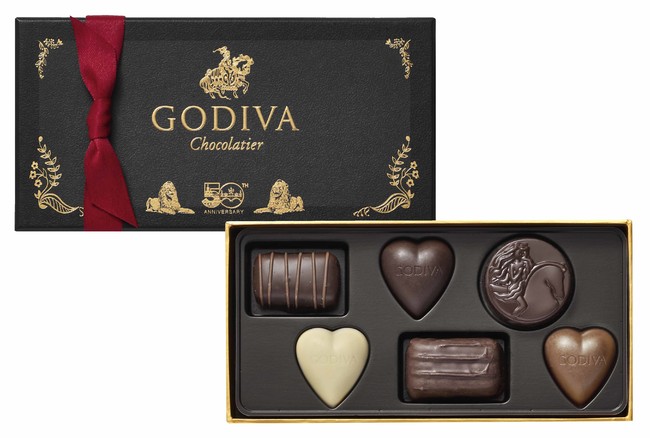 日本上陸50周年記念の限定チョコレートとゴディバゆかりのチョコレートを、ゴディバ復刻ロゴを使用したヴィンテージ感あふれる限定ボックスに詰め合わせました。